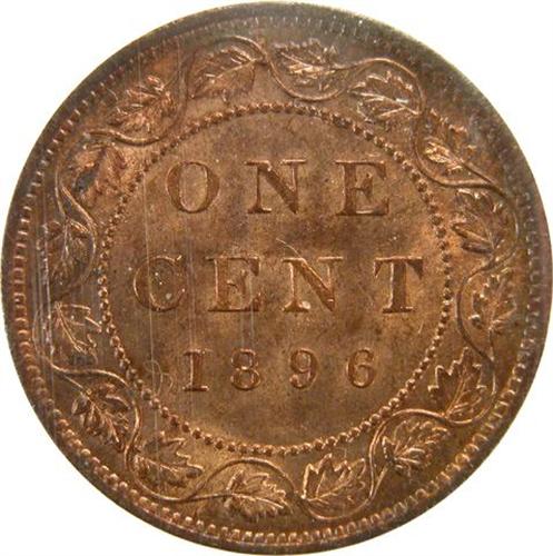 Canada Large Cent 1896 (Normal 6) ICCS MS-64 Red. This is a fully struck piece with strong lustre on near flawless surfaces that are about 75% red