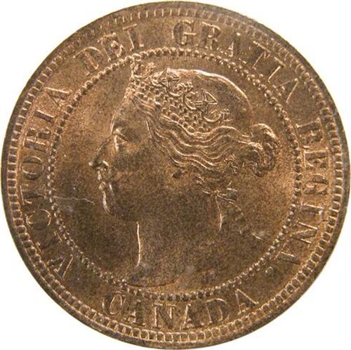 Canada Large Cent 1896 (Near 6) ICCS MS-64 Red. This is a fully struck piece with great lustre on near flawless surfaces that are over 80% red