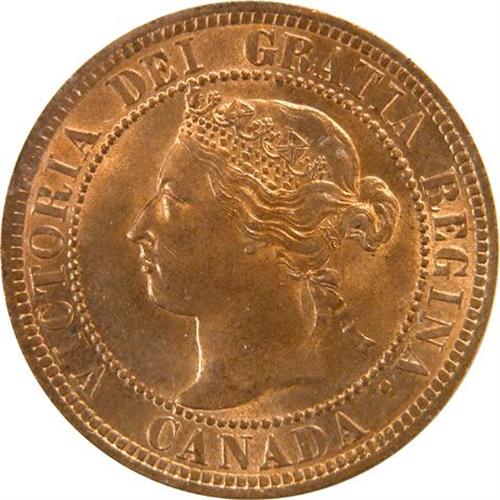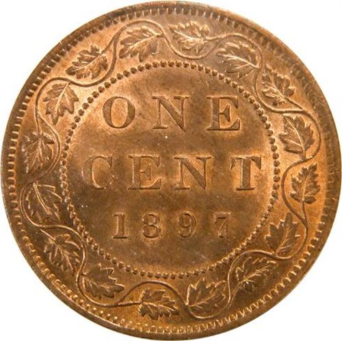 Canada Large Cent 1897 ICCS MS-64 Red. This is a fully struck piece with great lustre on near flawless surfaces that are over 90% red