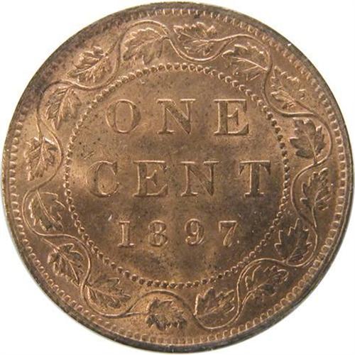 1897 ICCS MS-65 Red. This is a fully struck and strongly lustrous piece with near flawless surfaces that are about 85% red. It is tied as the highest graded by ICCS