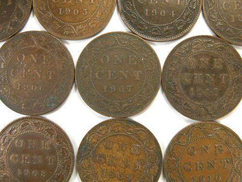 Canada Large Cent 1902 to 1910 Complete Edward set, including 1907H, all EF or better