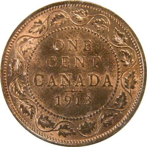 Canada Large Cent 1913 ICCS MS-64 Red and Brown. Fully struck and strongly lustrous with about 75% red
