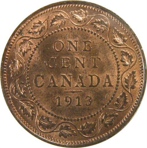 Canada Large Cent 1913 ICCS MS-64 Red. Fully struck and strongly lustrous with about 85% red