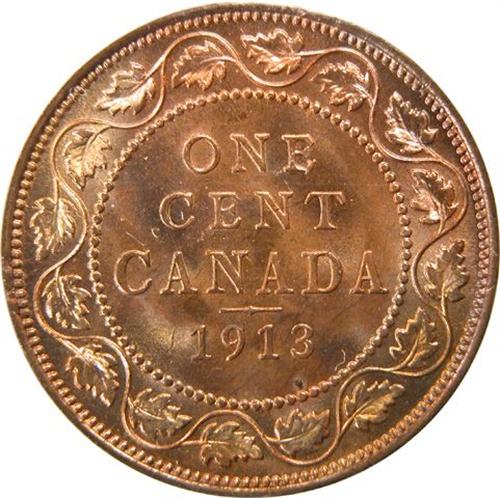 Canada Large Cent 1913 ICCS MS-66 Red. This is a fully struck and superbly lustrous piece with near flawless surfaces that approach full red. It is tied with one other as the highest graded by ICCS. PCGS has graded no Reds above MS-65 and only one MS-66 Red and Brown