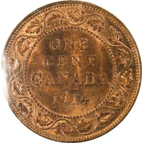 Canada Large Cent 1914 ICCS MS-64 Red. Fully struck with great lustre and about 90% red