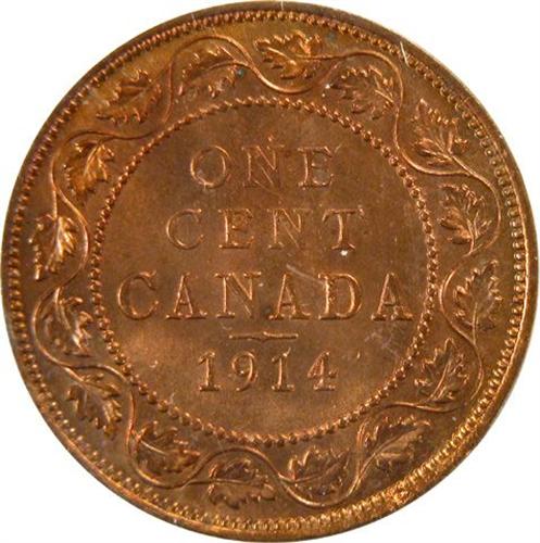 Canada Large Cent 1914 ICCS MS-64 Red. Fully struck and strongly lustrous with about 80% red