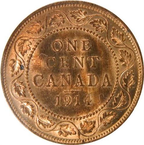 Canada Large Cent 1914 ICCS MS-65 Red. This is a fully struck piece with great lustre and near flawless surfaces that are about 90% red. It is tied highest graded by ICCS