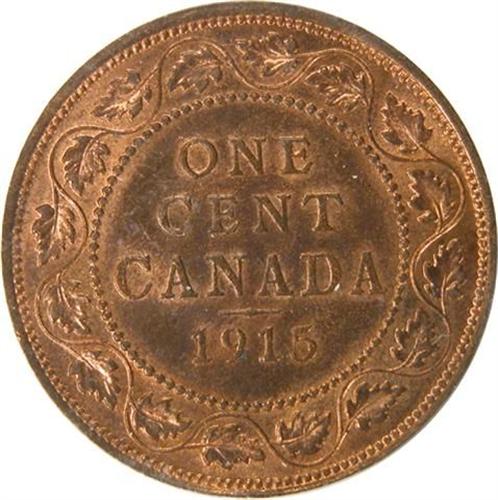 Canada Large Cent 1915 ICCS MS-63 Red and Brown. A strongly lustrous piece that is about 65% red