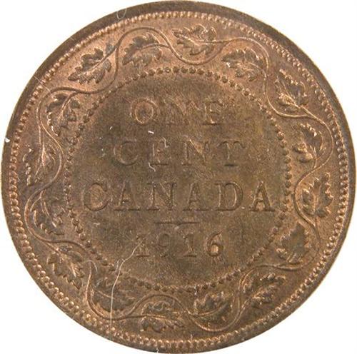 Canada Large Cent 1916 ICCS MS-62 Red and Brown