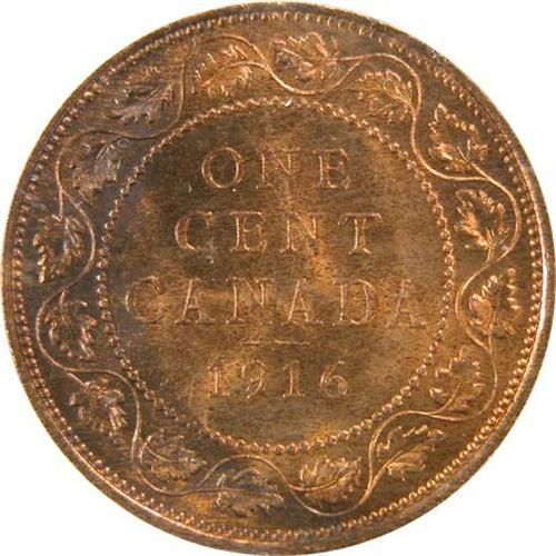 Canada Large Cent 1916 ICCS MS-65 Red. This is a fully struck piece with great lustre on near flawless surfaces that are about 80% red. Tied second highest by ICCS