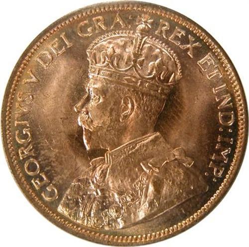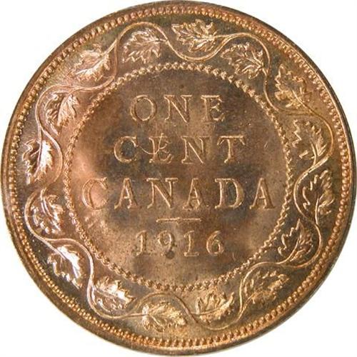 Canada Large Cent 1916 ICCS MS-65 Red. This is a fully struck piece with great lustre and near flawless surfaces that approach full red. It is tied as the second highest by ICCS
