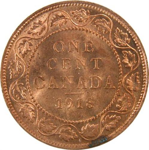 Canada Large Cent 1918 ICCS MS-63 Red. Fully struck with great lustre and about 90% red