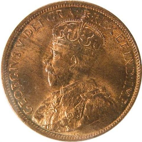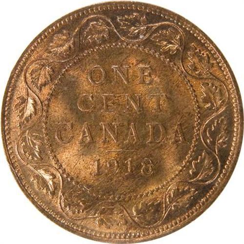 Canada Large Cent 1918 ICCS MS-65 Red. This is a fully struck piece with great lustre and near flawless surfaces that are about 80% red. It is tied as the second highest by ICCS