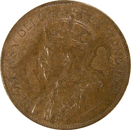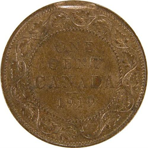 Canada Large Cent 1919 with a 95% Off-Centre Second Strike by an Unstruck Planchet, AU+