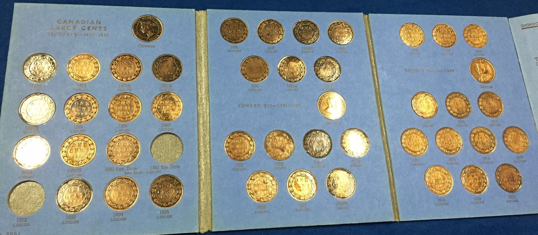 Canada Large Cent Collection 1858 to 1920 in Blue Folder. All coins have been polished & laquired. Missing 1891 Small Date, & 1892.