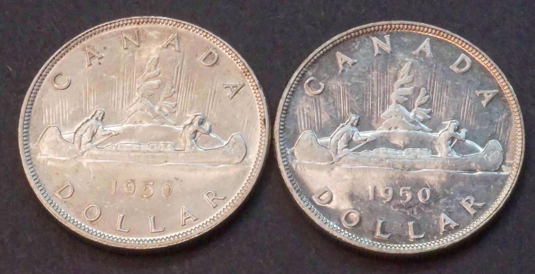 Canada Lot of 2 Silver Dollars 1950. 1 is Arnprior, the other SWL