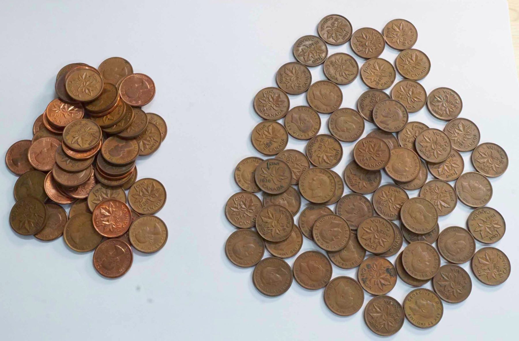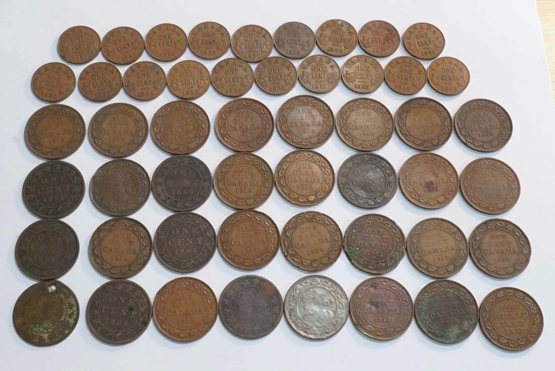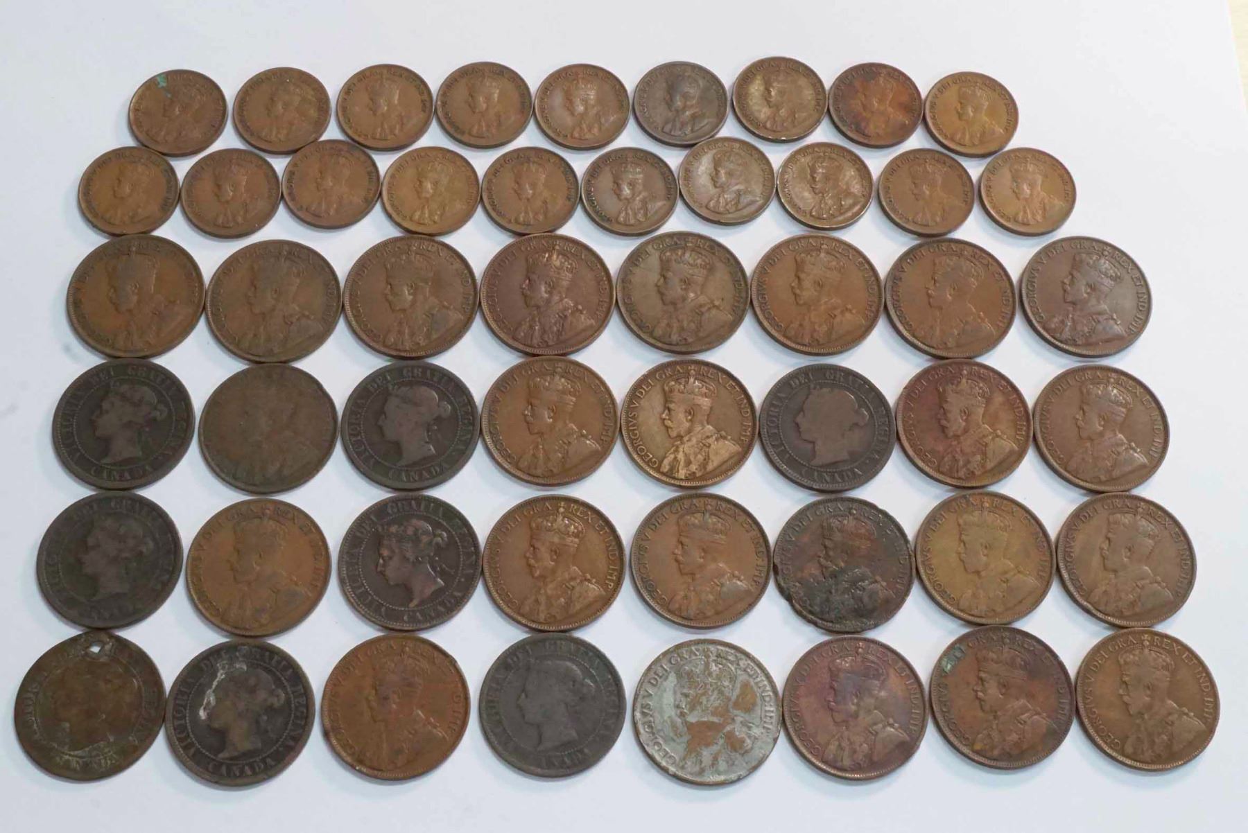 Canada - Lot of 31 Mixed Large Cents, some Victoria; 19 Small Cents George V; 61 George VI, 52 Elizabeth up to 1967. Many Nice Coins. Total of 163 coins