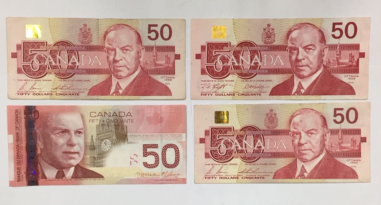 Canada Lot of 4 $50 Banknotes 3 Bird series, 1 Journey series. Circulated