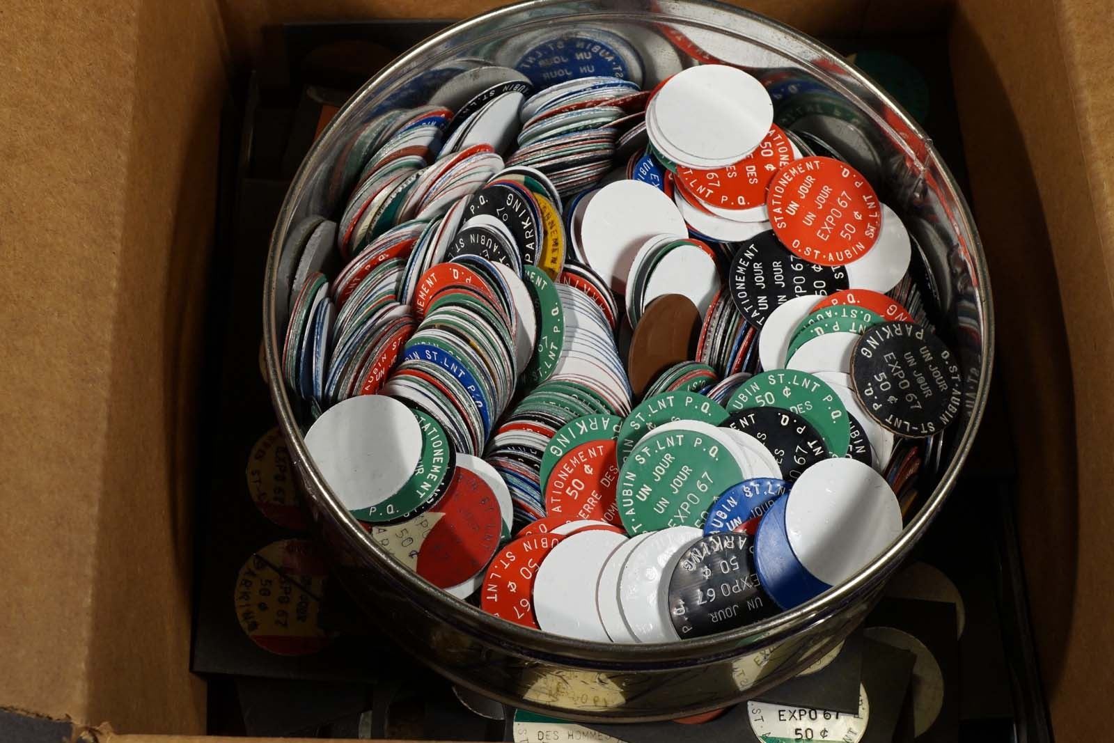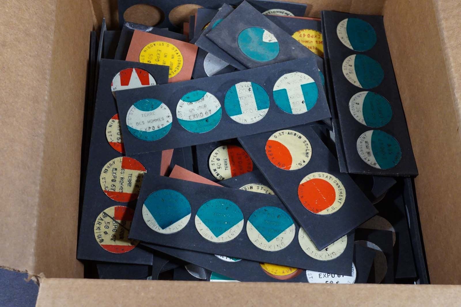 Lot of Expo 67 parking tokens prototypes, obverse O.ST-AUIBIN ST-LNT P.Q. TERRE DES HOMMES EXPO 67 50c PARKING, nothing on the back, made of metal 35mm
