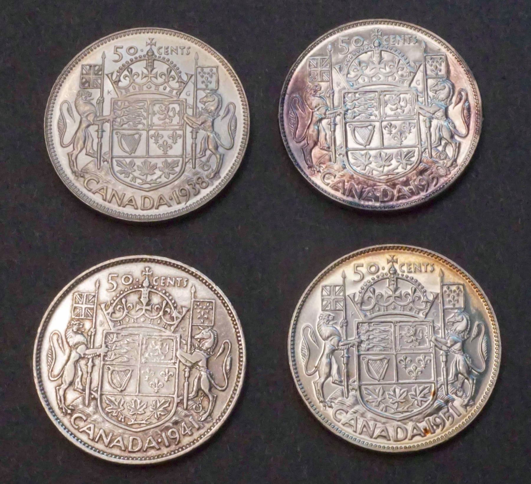 Canada Lot of Four 50c : 1938 EF-40; 1941 (F), 1950 (AU), 1951 ND (MS-63)(IOHO)