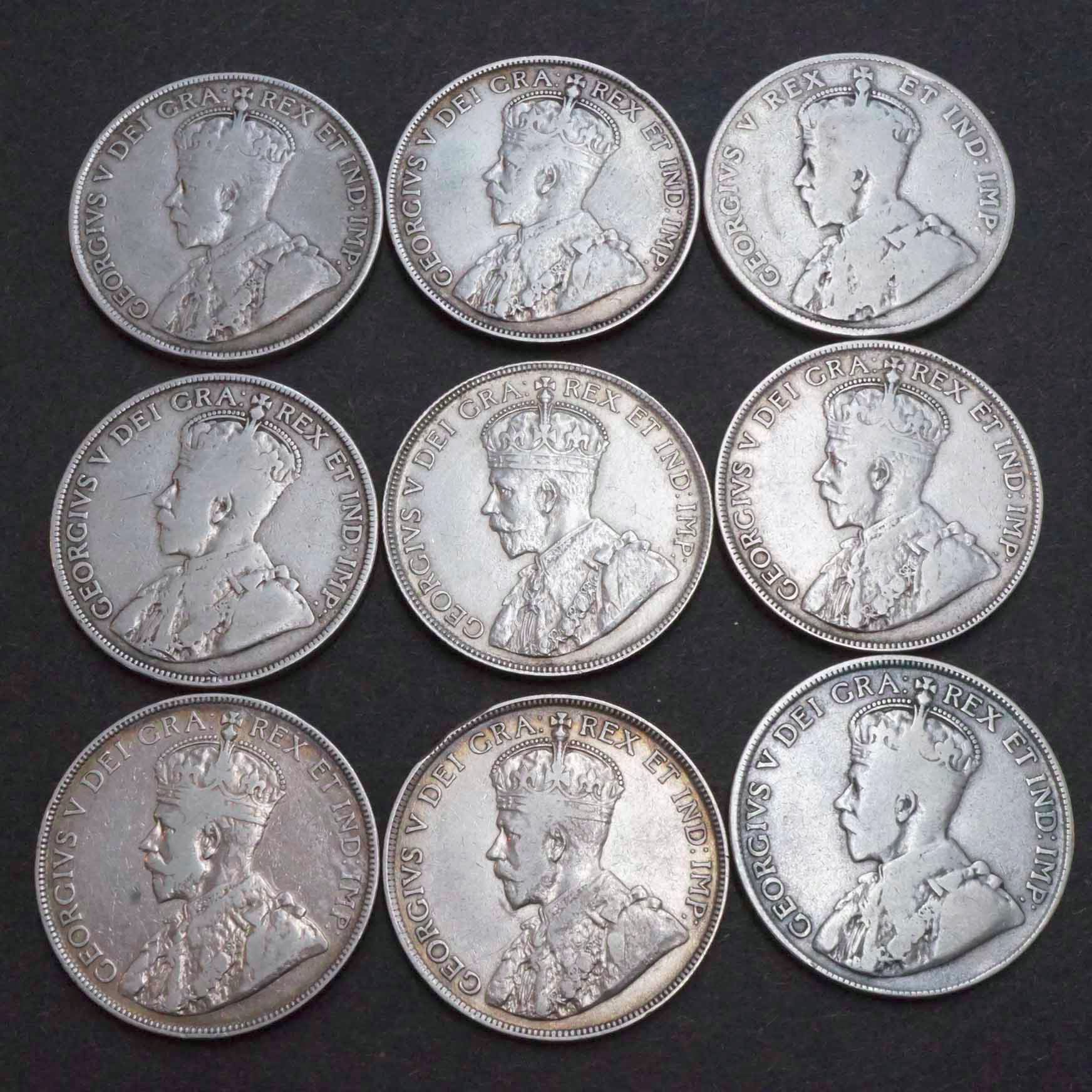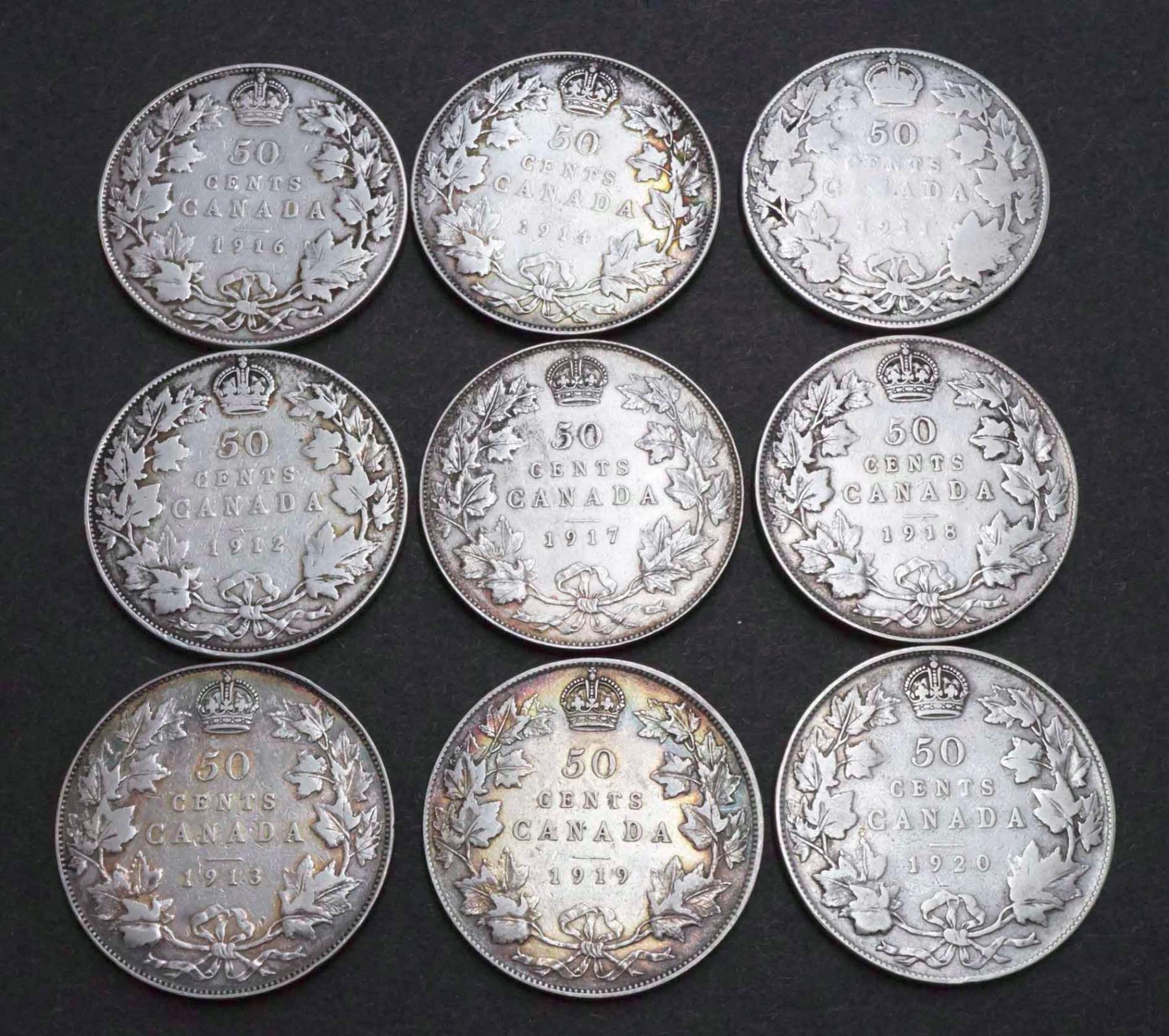 Mixed circulated grades. To note : The 1914 in VG, and the 1917 in EF. Total nine coins.