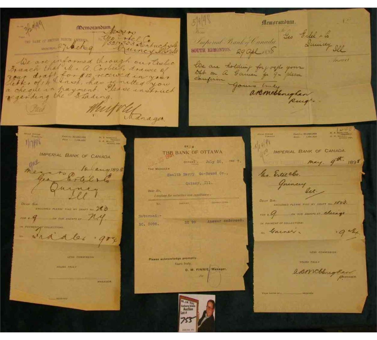 Canada Lot of old Scrip from "The Bank of Ottawa", "The Bank of British North America"; & "Imperial Bank of Canada". All 1890 era.