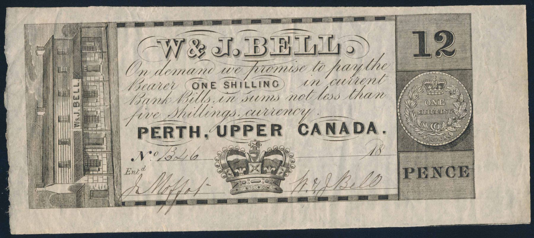 Canada Merchant Scrip W & J. BELL Perth, Upper Canada 12 Pence ON10-10-06R ?