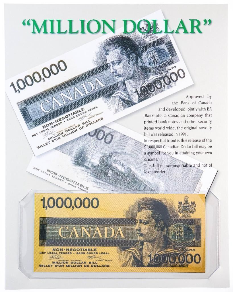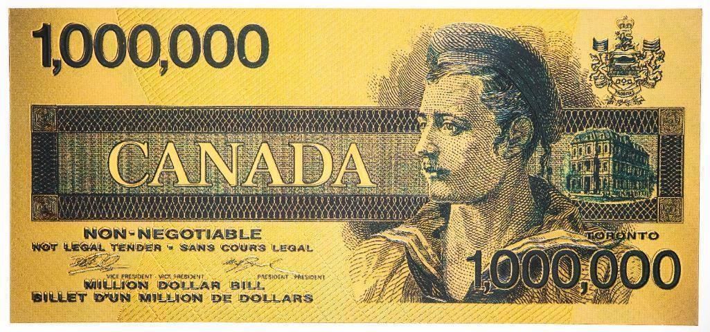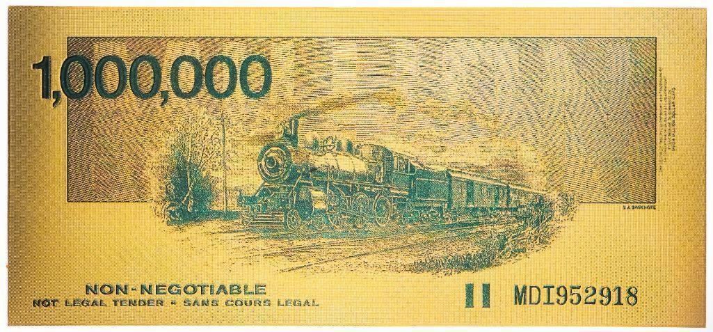 Canada Million Dollar Note - 24kt Gold Gilded Collectible, w/ 8 x 10 Giclee Art Card Display