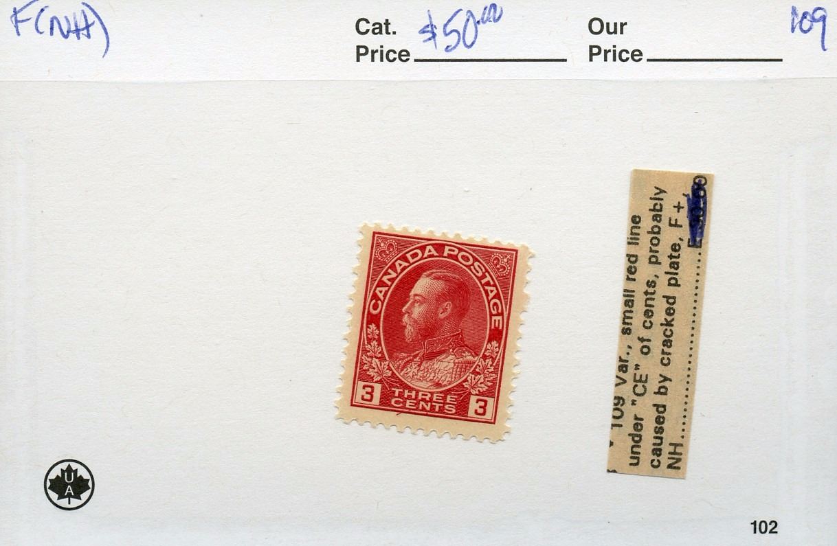 Canada Mint #109, variety small red line under «CE» of «Cents», F (NH).