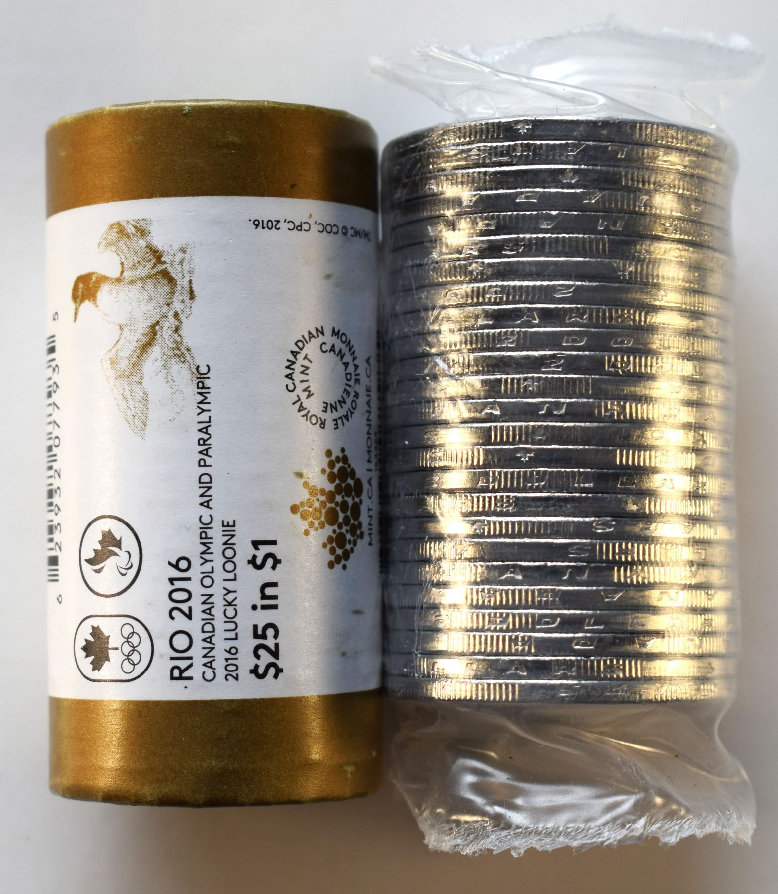 Canada, Mint Roll x 2, $1 2016 Olimpics "Mint Special Wrap" and $2 roll 2023 "Indigenous Peoples Day" Colored both Unopened Sealed (2)
