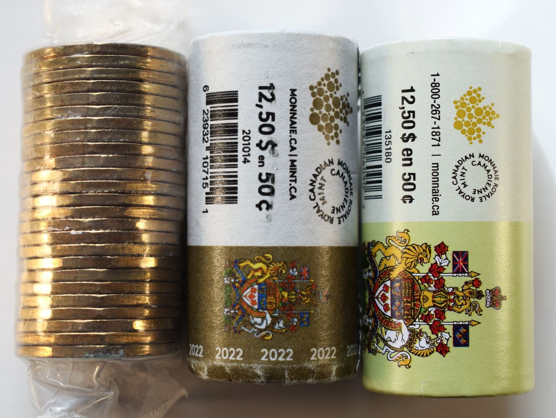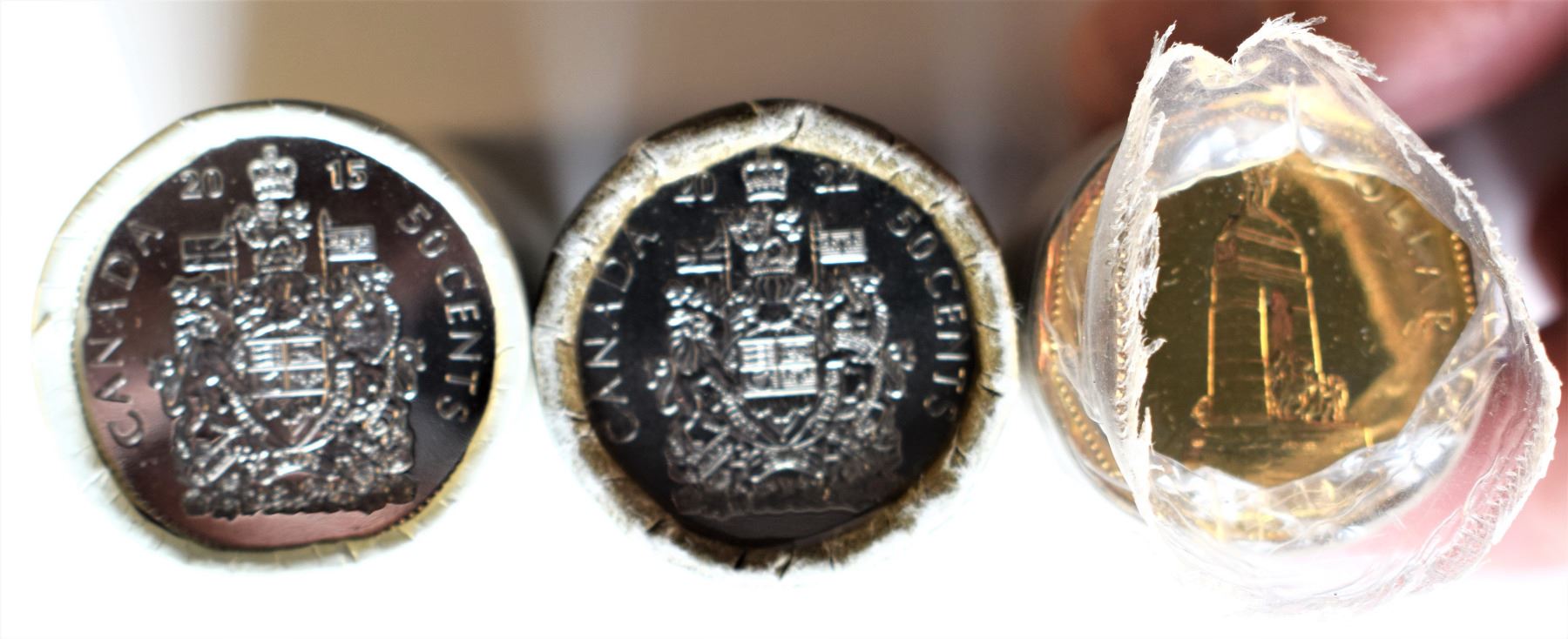 Canada, Mint Roll x 3, 0,50c x 2 Special Wrap 2015 and 2022 + $1 roll 1994 "National War Memorial" all 3 Unopened Sealed (3)