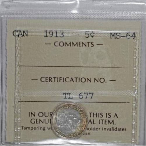 <B>Mint State Certified Silver Selection,</B></I> 5 Cents 1913, MS64 ICCS, light golden toning in the legends, 50 Cents 1947 curved right 7, MS62 ICCS, and Dollar 1935, MS64 PCGS.<BR><BR><b>Shipping:</b> Coins & Currency (<a target="_blank" href="http://www.heritageauctions.com/common/shipping.php">view shipping information</a>)
