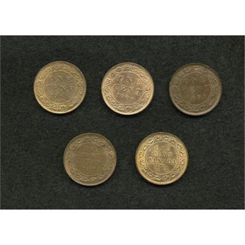 <B>Mixed Group of Large Cents,</B></I> five different dates as follows: 1891 SDSL obverse 3, lustrous AU, tiny flan flaw, 1906, nice UNC, 1907, UNC, one noticeable spot, 1911, lustrous UNC, and 1917, UNC with some luster in the legends. <B>Sold as is, no return lot.</B></I><BR><BR><b>Shipping:</b> Coins & Currency (<a target="_blank" href="http://www.heritageauctions.com/common/shipping.php">view shipping information</a>)