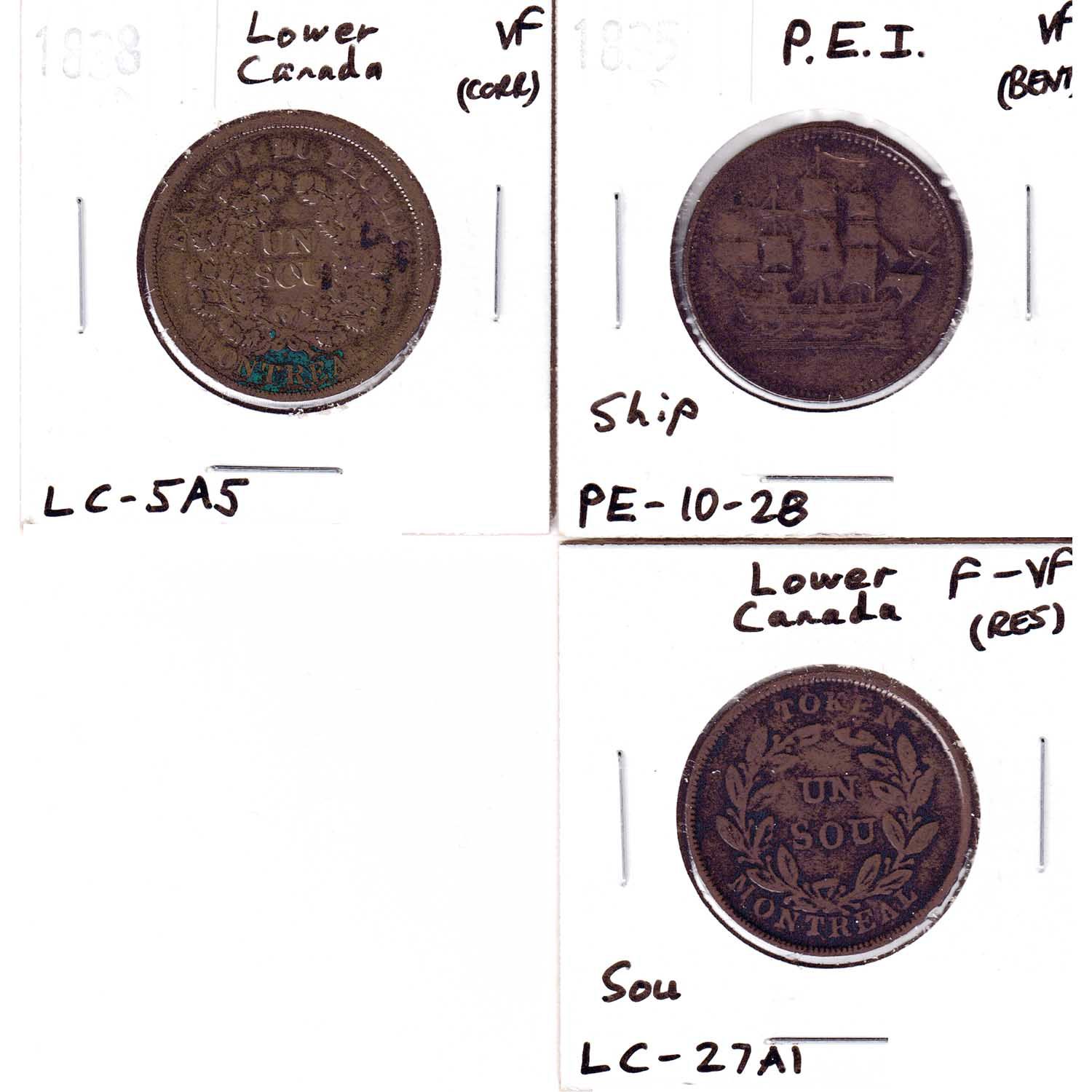 INCLUDES: LC-5A5 1838 VF (Corrosion), LC-27A1 ND Sou F-VF (Residue), & PE-10-28 1835 Ship VF (Bent). Various imperfections; please see images