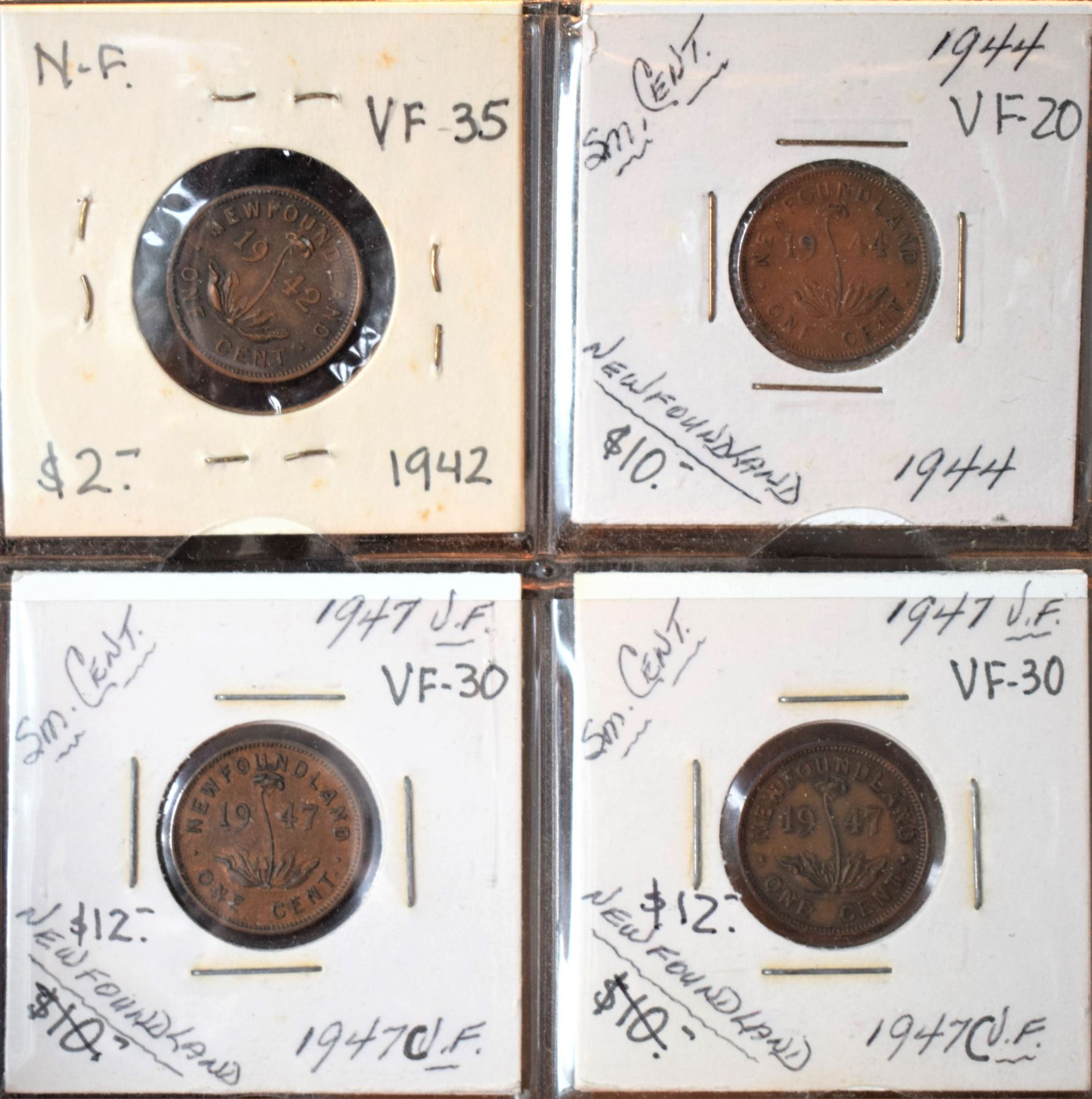 Canada, Newfoundland 0.01c Groupe of 4 "Small Cent" 1942, 1944 & 1947(2), Average VF and better (4)