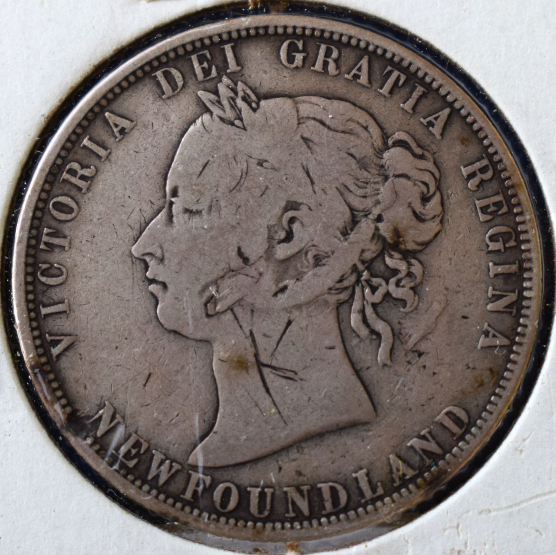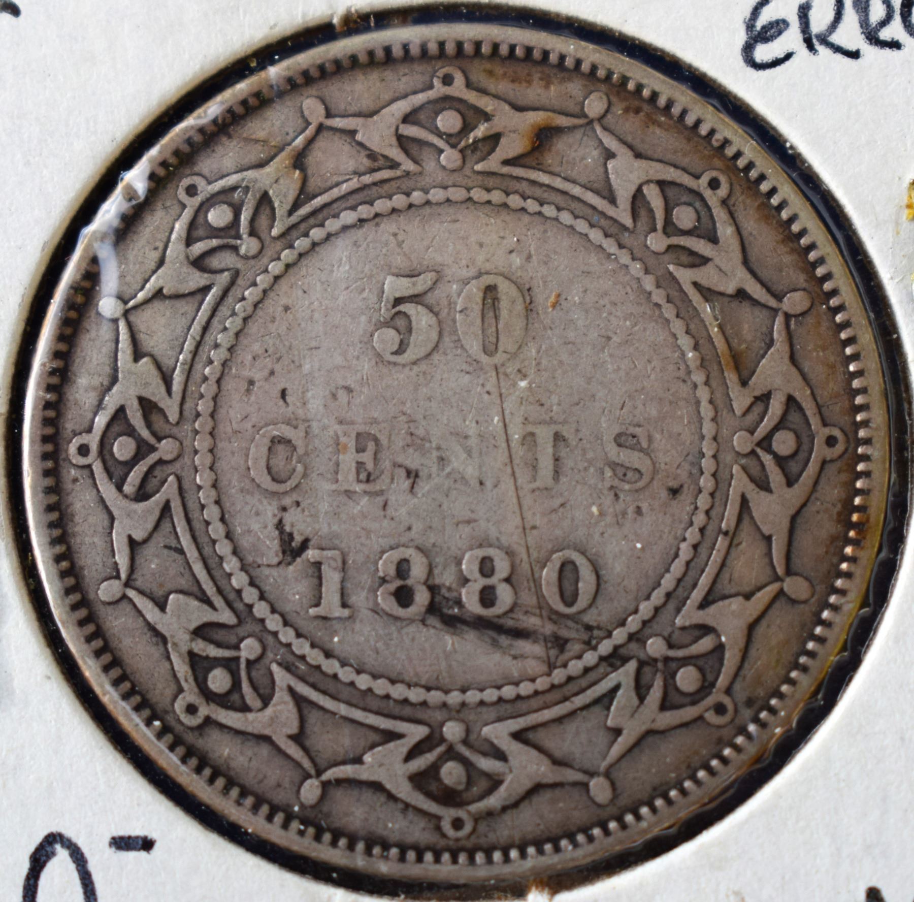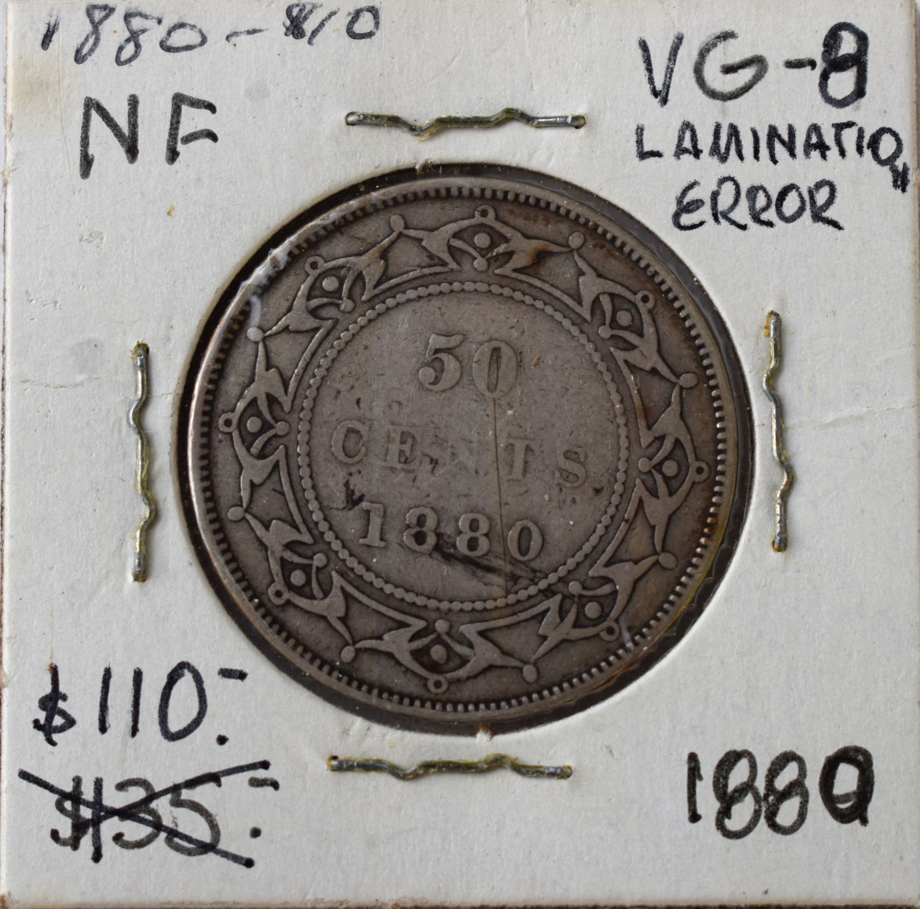 Canada, Newfoundland 0.50c Silver 1880 (Obverse 1) "Only 24k Struck" Key Date and LAMINATIOM ERROR Grade VG or Better