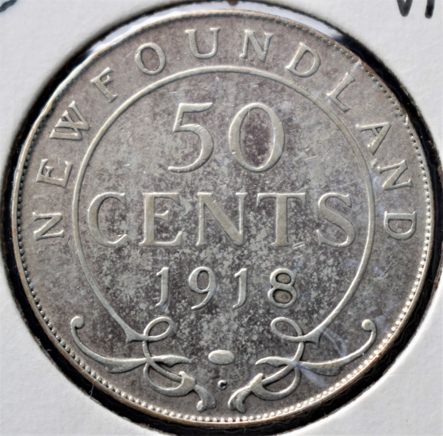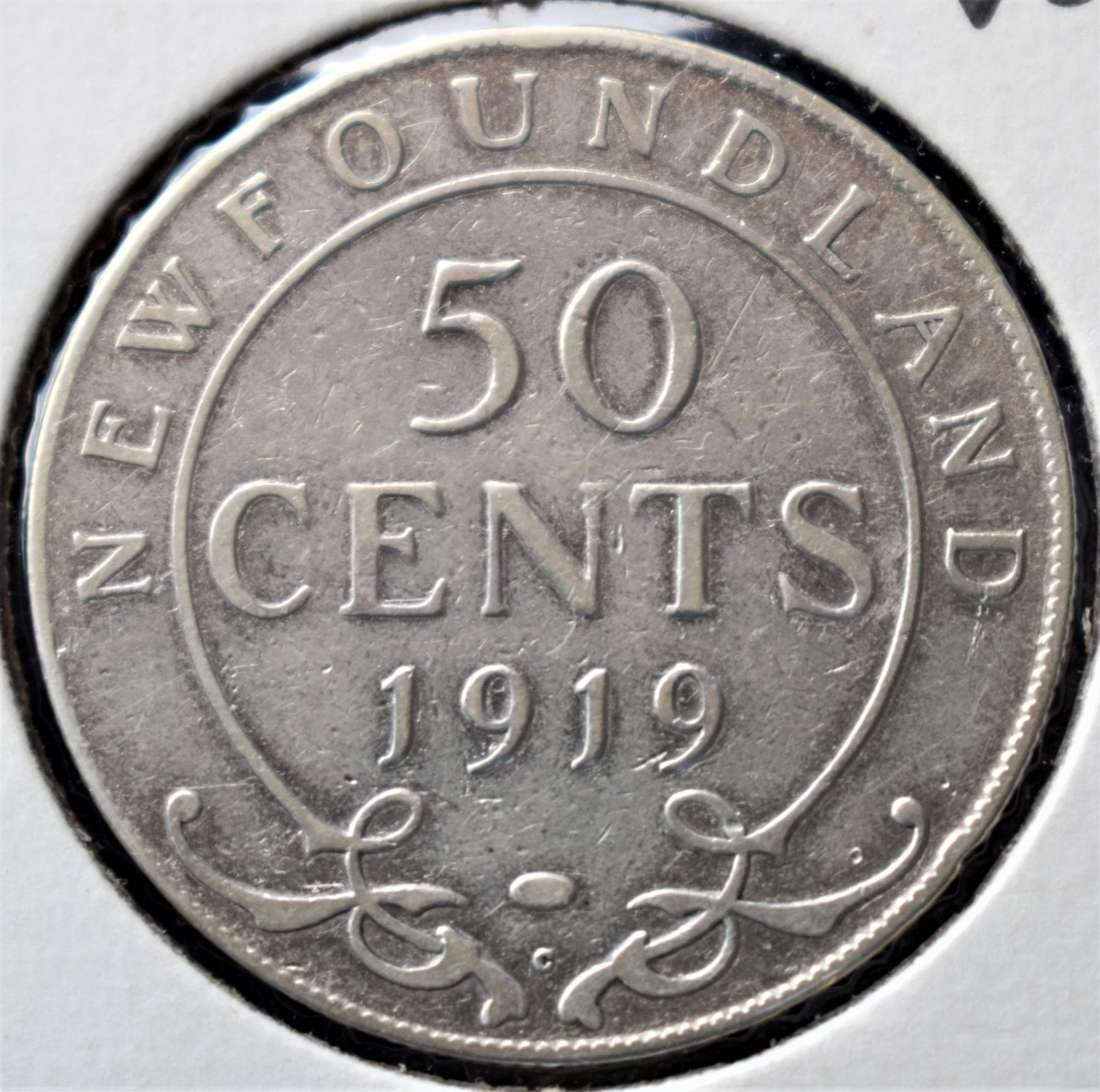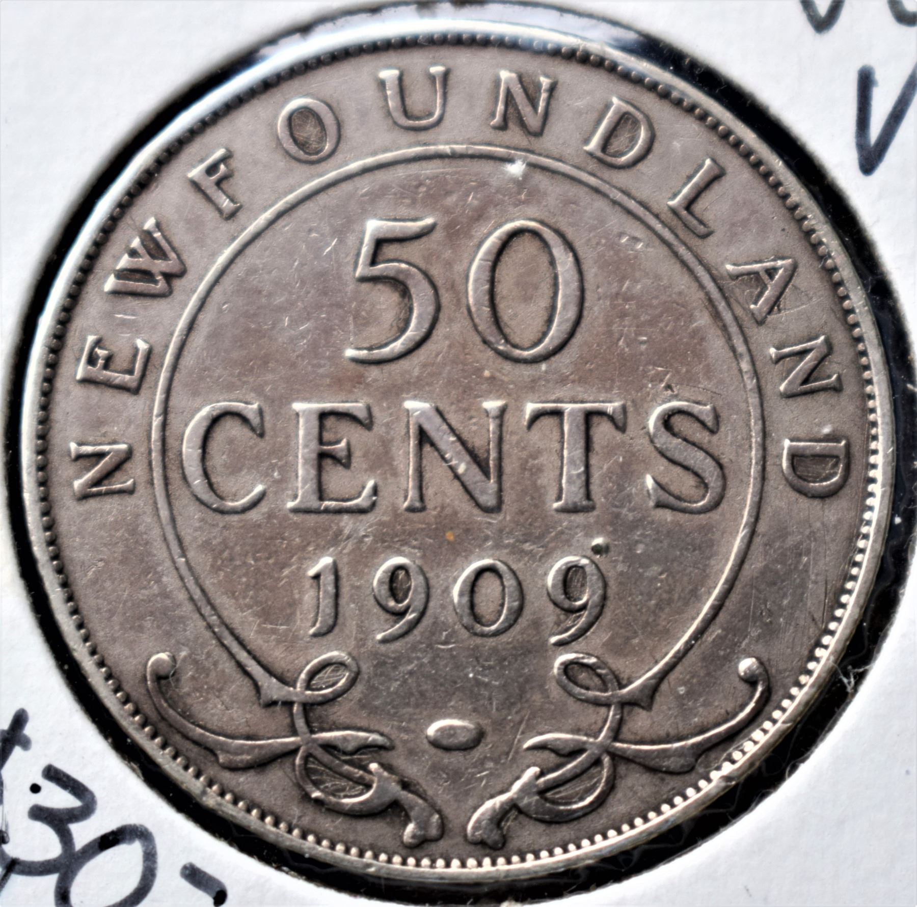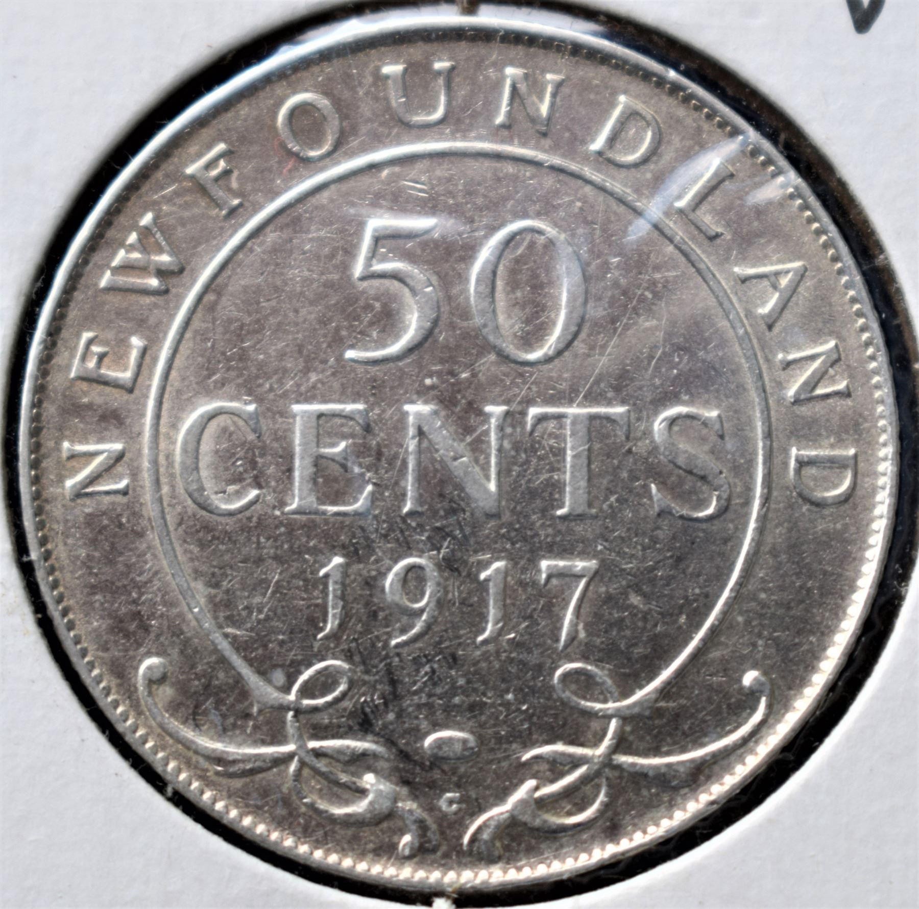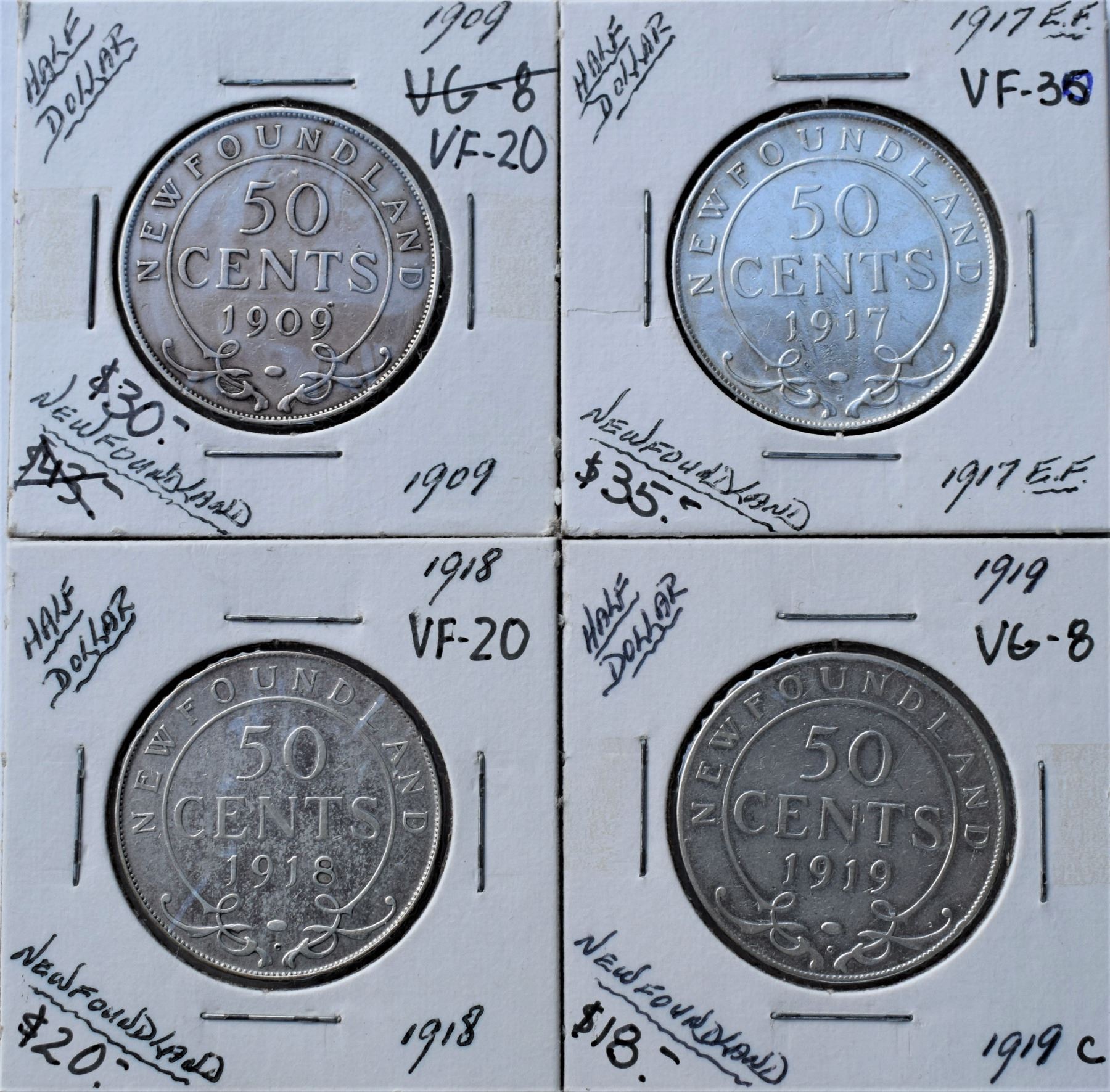 Canada, Newfoundland 0.50c Silver 1909, 1917-C, 1918-C & 1919-C Grade VG+ / Choice VF+ or Better (4)
