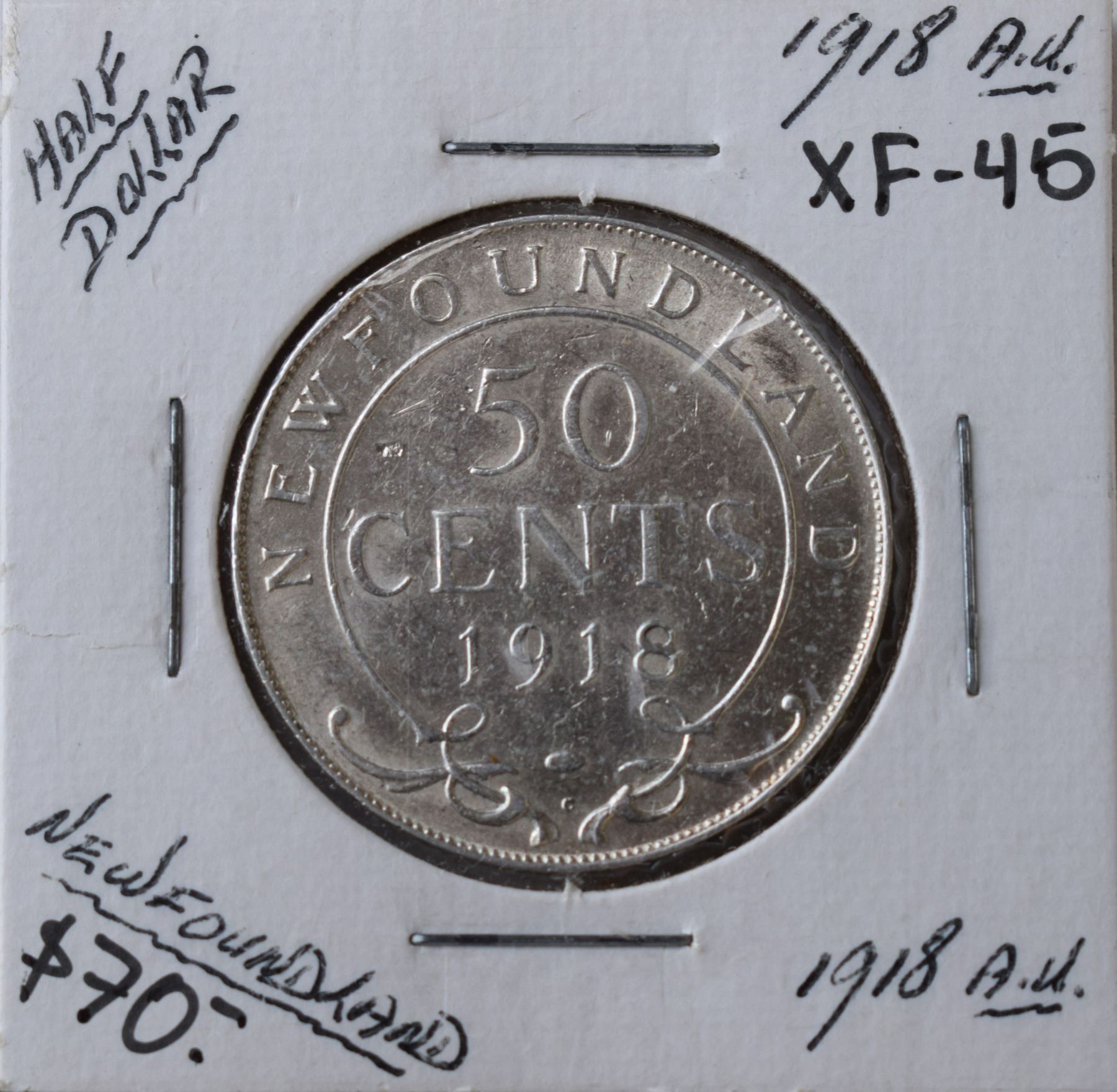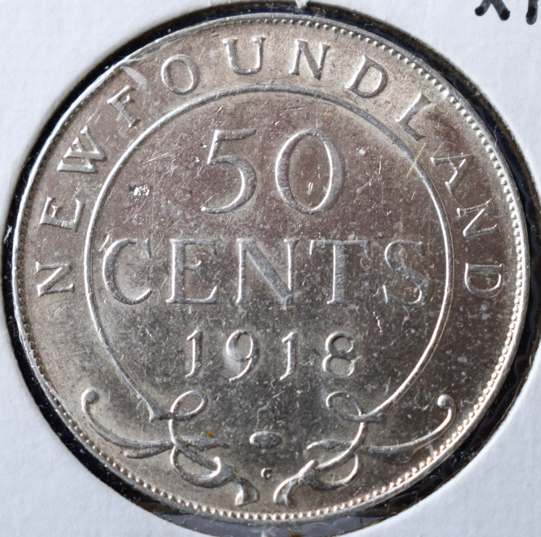 Canada, Newfoundland 0.50c Silver 1918-C Choice XF+ or Better, Luster