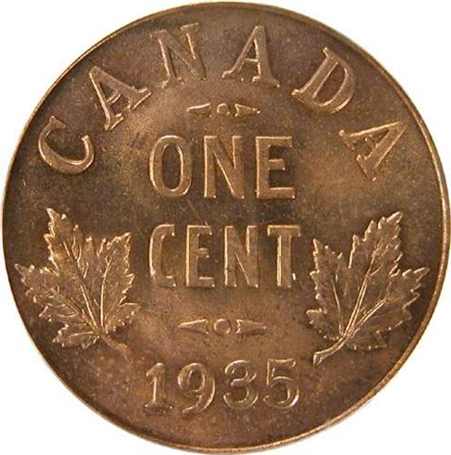 1935 PCGS MS-65 Red. This is a fully struck piece with great lustre and about 95% red. Only one piece graded higher by PCGS