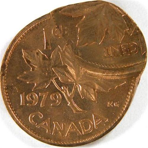 Canada One Cent 1979 Triple Struck, the second being 70% Off-Centre, the third being a 65% Off-Centre from a Capped Die, Red Uncirculated