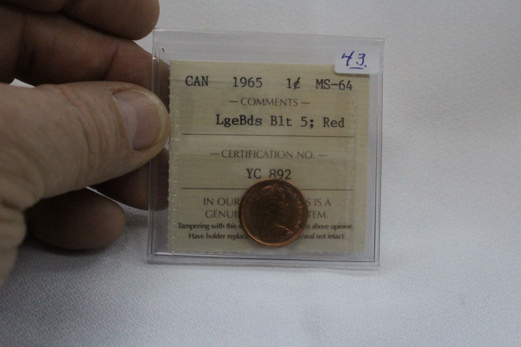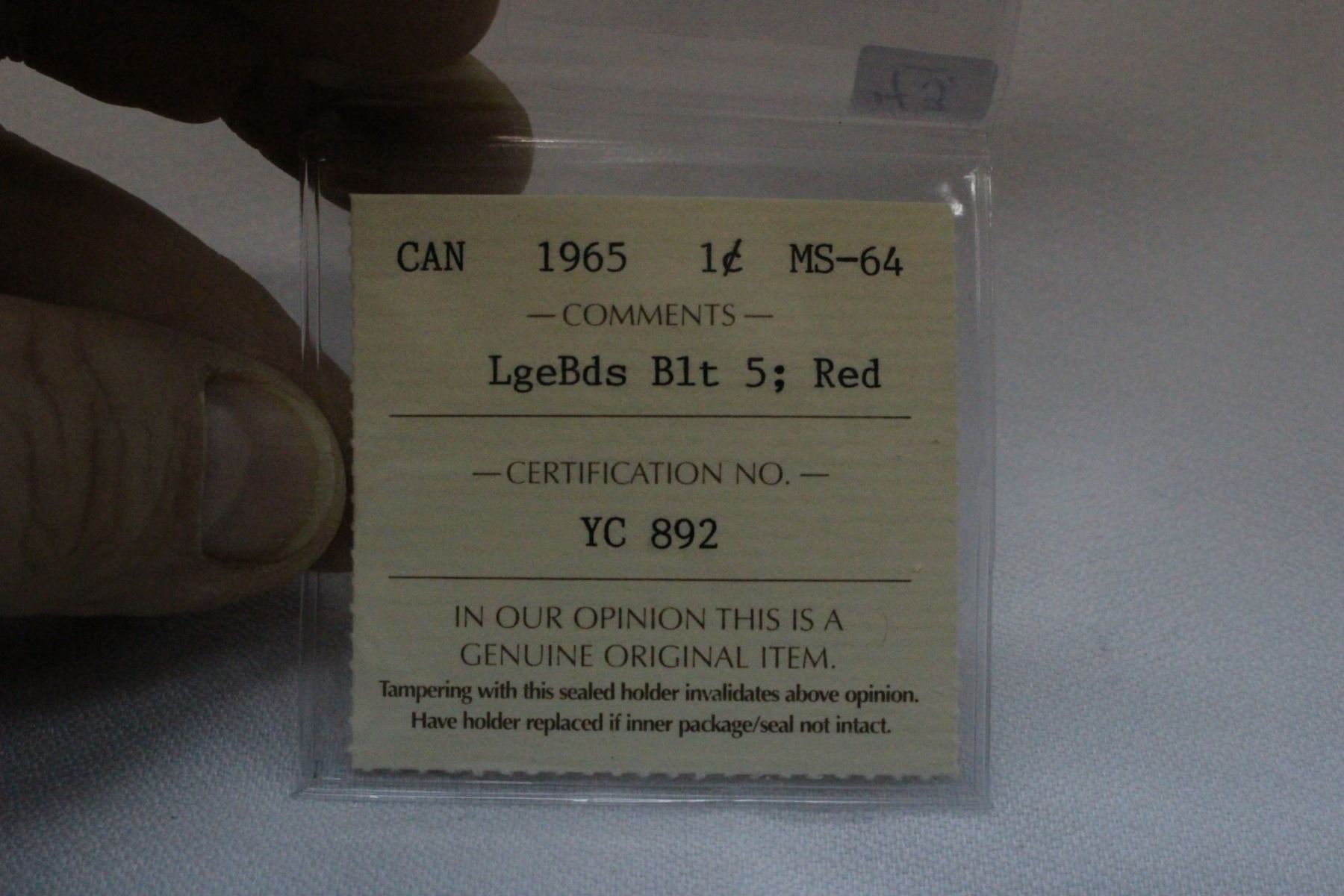 1965; Graded MS64; Lge Bds; Blt 5; Red