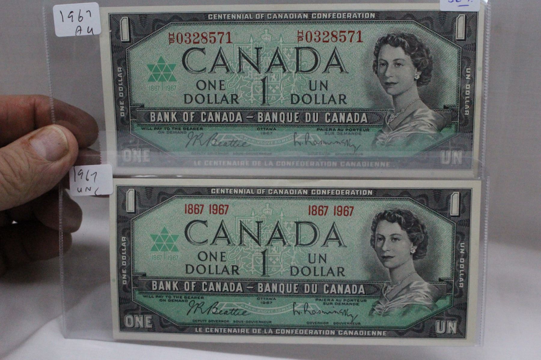 Canada One Dollar Bills (2) 1967 (Both Issues) (AU)