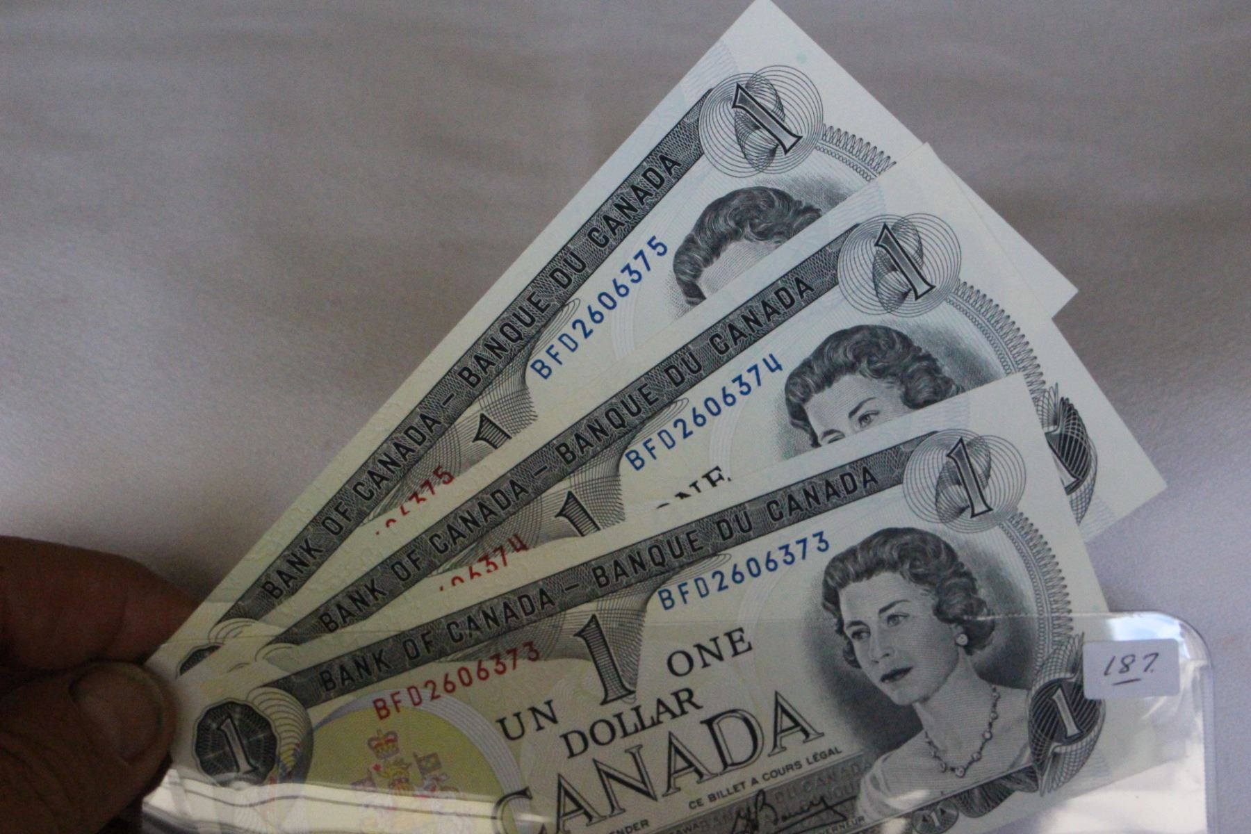 1973, Crow/Bouey, Consecutive, Crisp as Unc., BFD2606373, 74, 75