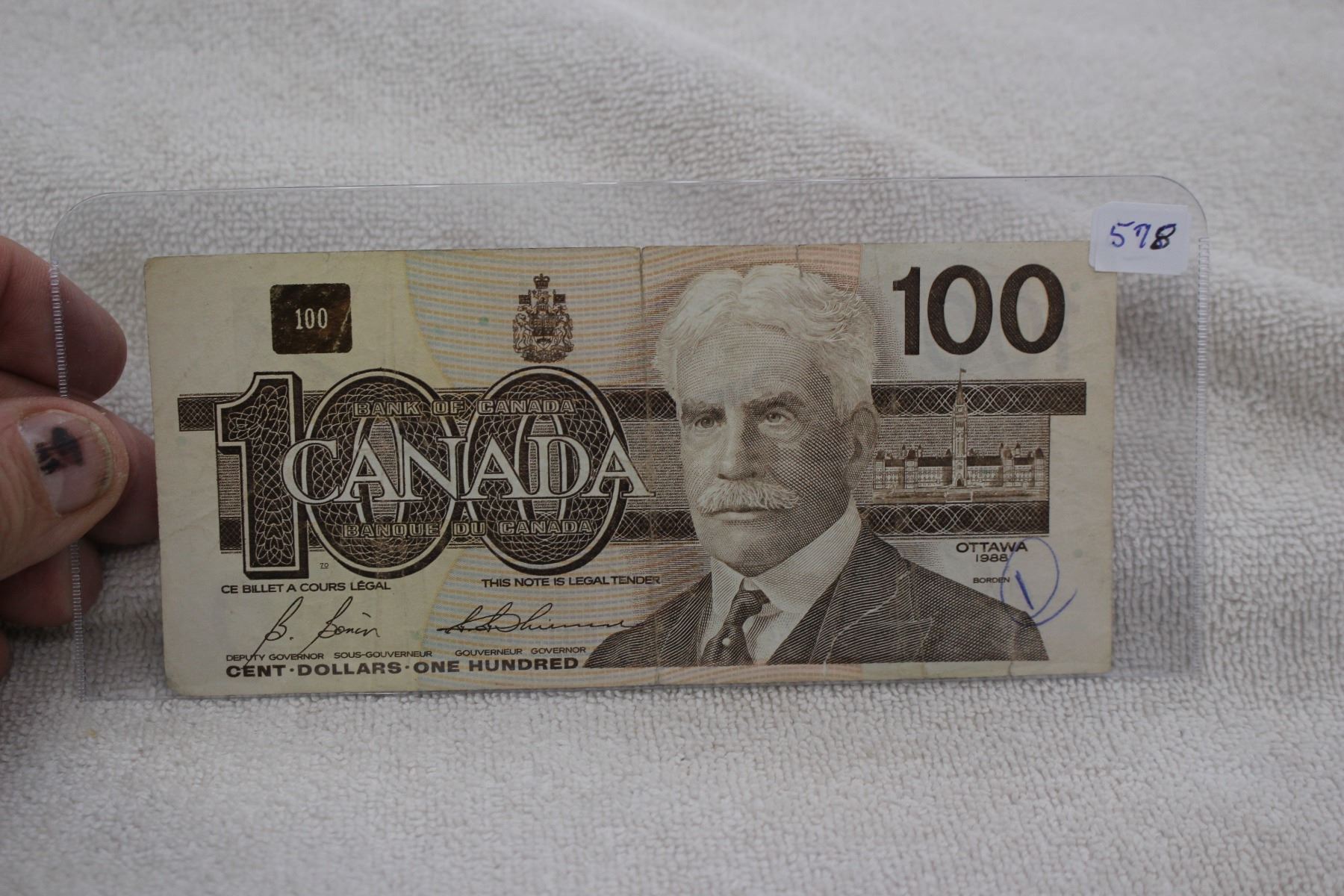 Canada One Hundred Dollar Bill - 1988 - Circulated - 32 years old