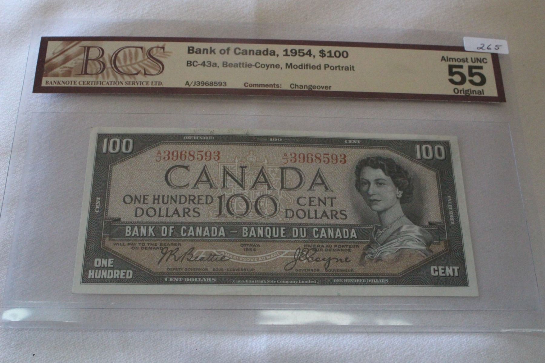 1954; Beattie/Coyne; A/J3968593; Graded 'Almost Unc. 55' by Banknote Certification Service