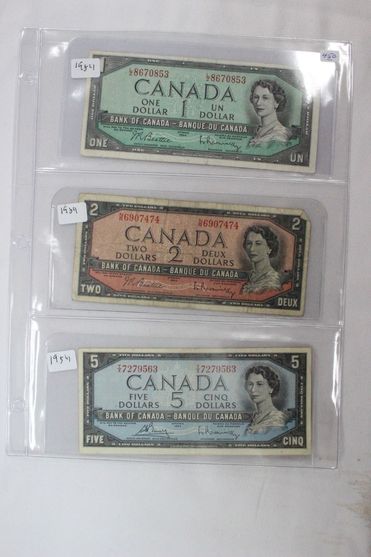 1954; $1 Beattie/Rasminsky L/Z8670853; $2 Beattie/Rasminsky N/R6907474; $5 Bouey/Rasminsky T/X7279563