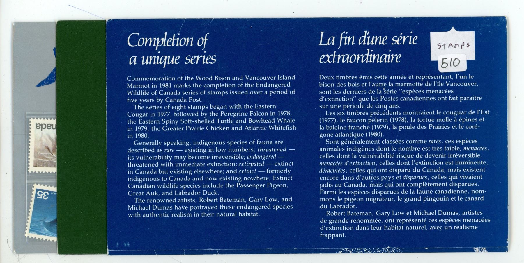 Canada Post Endangered Wildlife in Canada series of 21 stamps, all Mint.