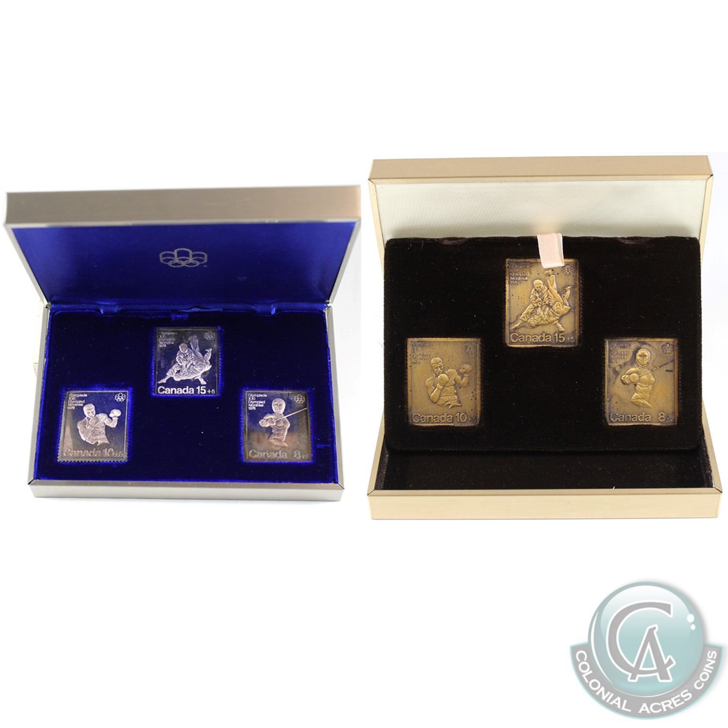Canada Post Issue: 1976 Olympic Limited Edition Collector Silver & Bronze Stamp Plate with Stamps. 2 sets