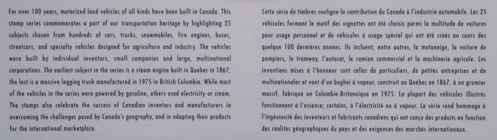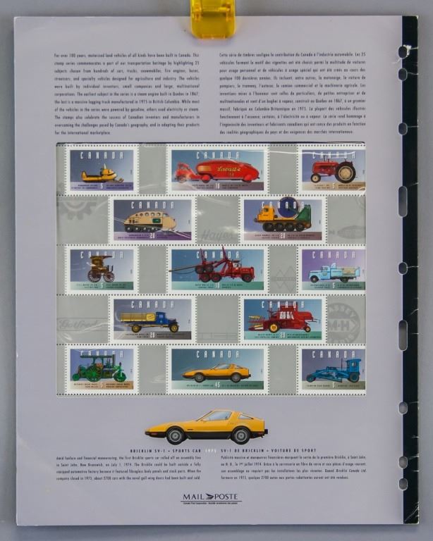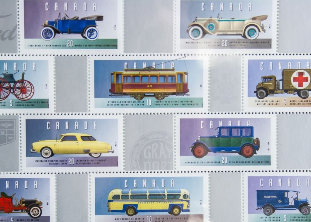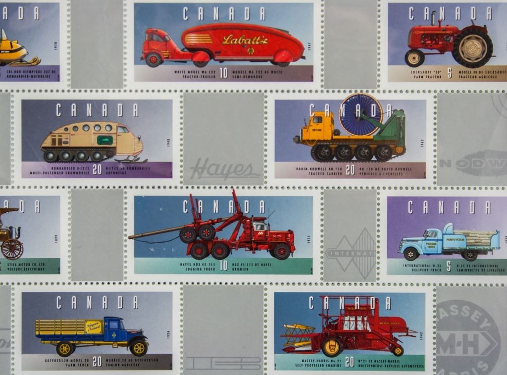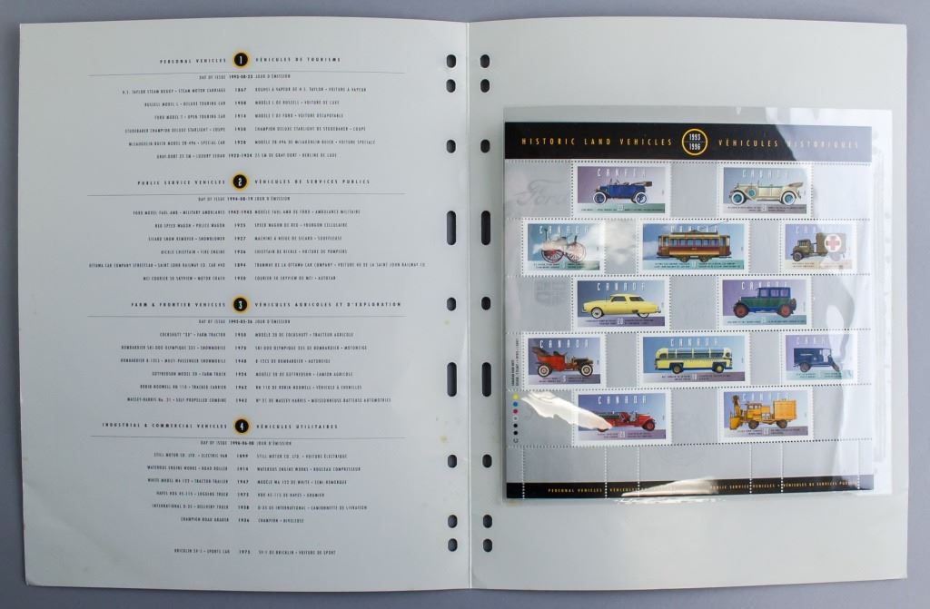Canada post stamp set. Featuring land vehicles. 1993-1996. In sealed condition. 27 x 22 cm.