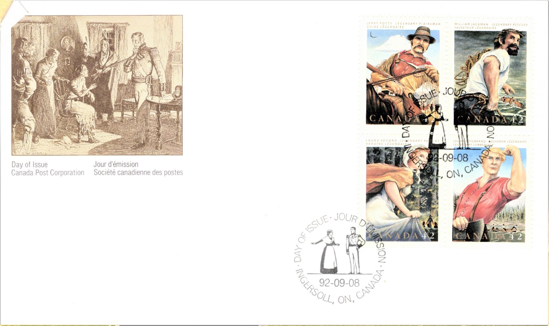 Canada Post - Legendary Heroes A Series on Canadian Folklore 1992 - Stamps and First Day Issue Envelope Included